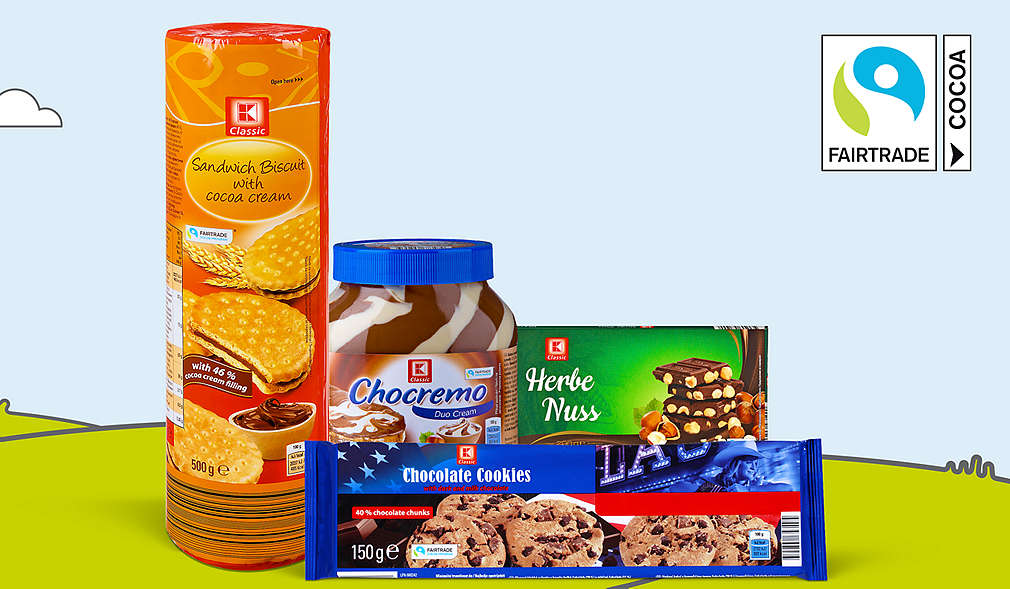 U paleti naših proizvoda K-Classic i K-Bio pronaći ćete proizvode od čokolade koji sadrže Fairtrade certifikat, a čiji udio kakaa potiče iz pravedne trgovine. U to se, između ostaloga, ubrajaju čokolada, namazi od čokolade i različiti keksi.