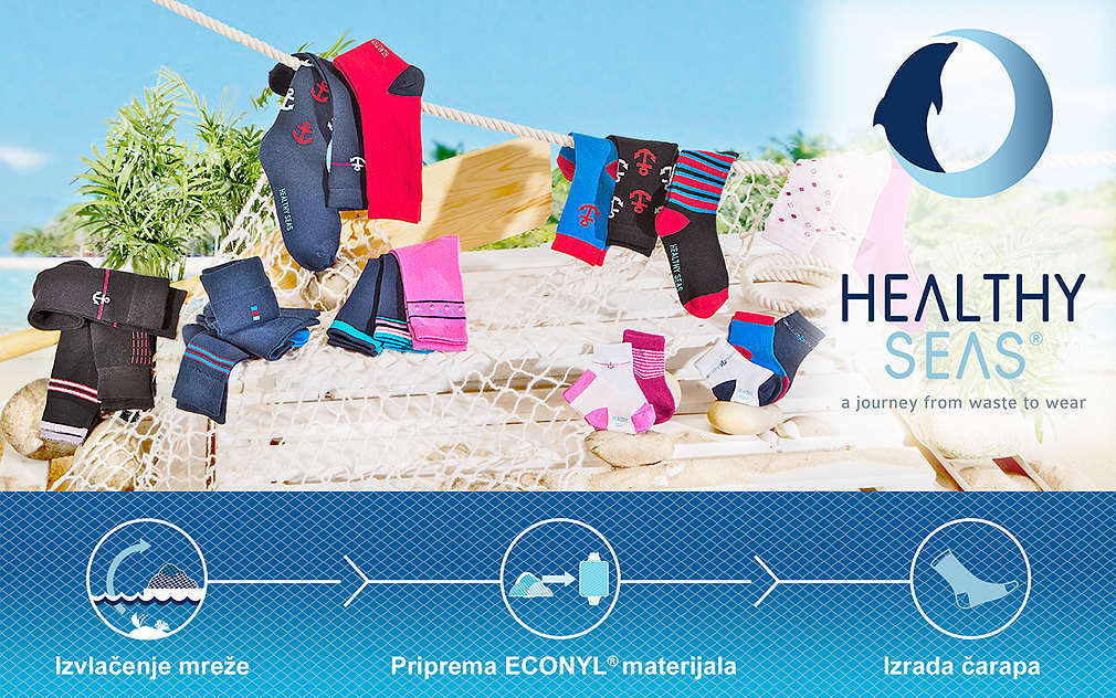 Odbačene ribarske mreže čine otprilike jednu desetinu otpada u svjetskim oceanima. Te takozvane „mreže-duhovi“ često godinama plutaju, ugrožavajući ribe i ostale stanovnike mora, kao što su dupini ili kornjače. Zahvaljujući inicijativi „Healthy Seas“, odbačene se mreže izvlače iz mora te se, primjenom inovativnog procesa recikliranja, prerađuju u ECONYL® materijal - sirovinu za kvalitetne proizvode kao što su čarape. Kao partner inicijative „Healthy Seas“ aktivno pridonosimo zaštiti mora i dobrobiti generacija koje dolaze.