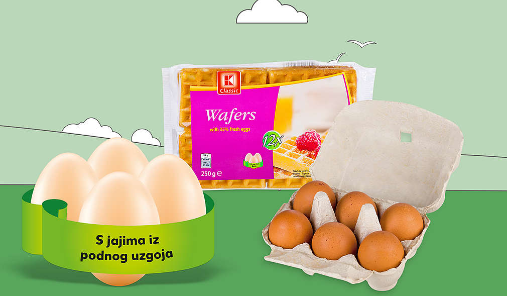 U slučaju prerađenih proizvoda naše vlastite marke (npr. tjestenine i peciva) vrlo nam je važno korištenje jaja iz podnog ili slobodnog uzgoja. Odabrani proizvodi, kao što su svježi vafli, na pakiranju imaju natpis "s jajima iz podnog uzgoja".