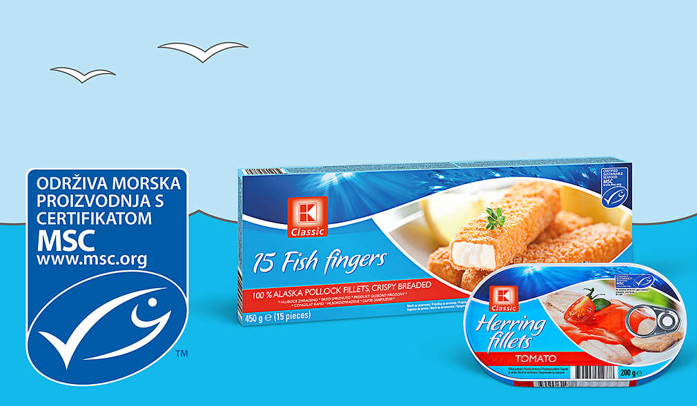 Svoju paletu ribljih proizvoda iz održivog izlova s MSC certifikatom neprestano proširujemo. To se odnosi i na proizvode naše jake marke K-Classic, npr. riblje štapići ili filet aljaške kolje. Kao neovisna i neprofitna organizacija, MSC se zalaže za održivi ribolov u cijelome svijetu.