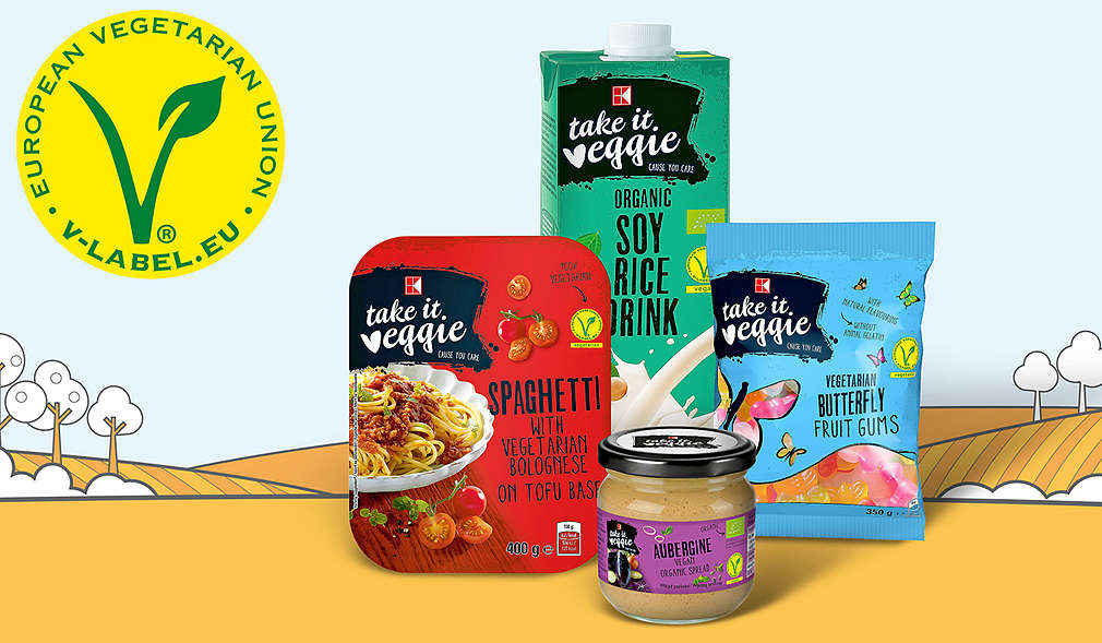U našem asortimanu K-take-it-veggie naći ćete brojne visokovrijedne, ukusne i povoljne alternative - mnoge čak s biocertifikatom. Za bolju orijentaciju, odgovarajući proizvodi i iz preostalog asortimana vlastitih marki imaju znak "V", koji označava vegetarijanske i veganske proizvode u skladu s propisima Europske vegetarijanske unije (EVU).