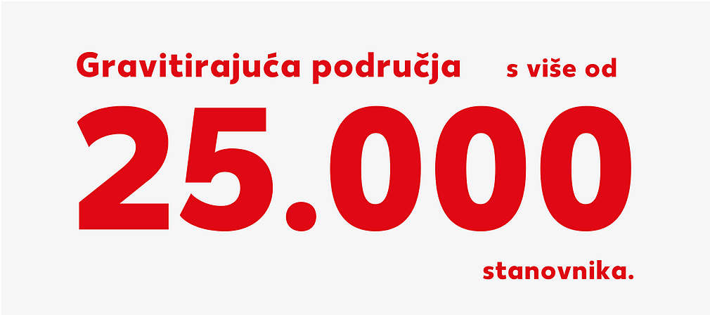 - Gravitirajuće područje: najmanje 25.000 stanovnika