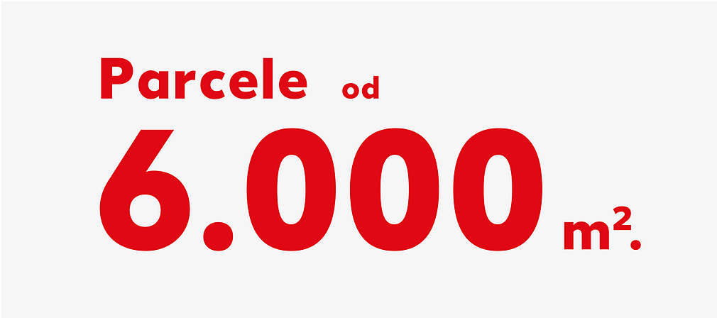 - Izgrađene ili neizgrađene parcele: površine od 14.000 m2 do 22.000 m2